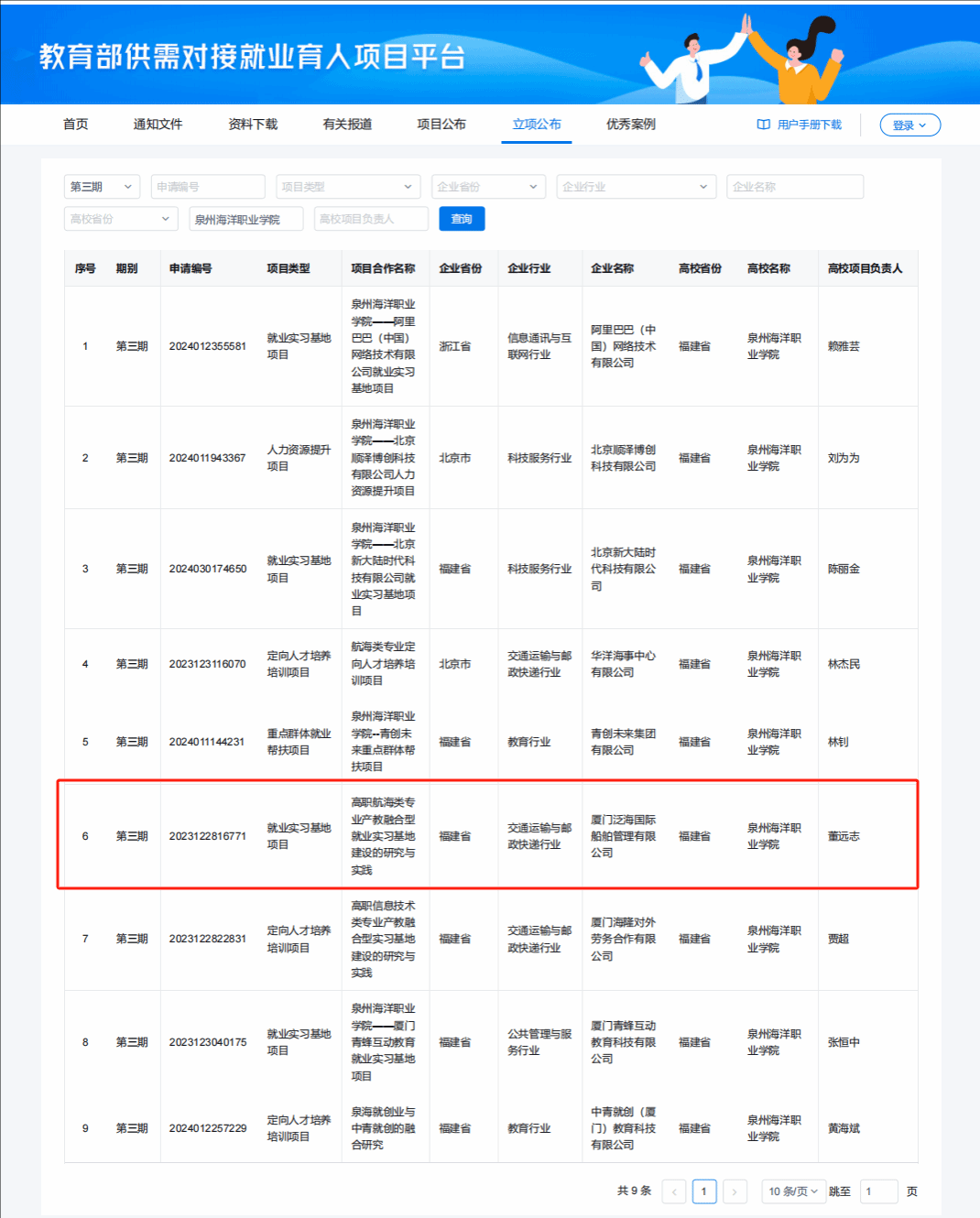 近日,教育部高校学生司第三期供需对接就业育人项目立项名单公布(教就业司函【2024】23号),学院1个项目经高校申请、用人单位申报、专家审核、立项单位信息核查等流程,顺利通过审批,成功立项!