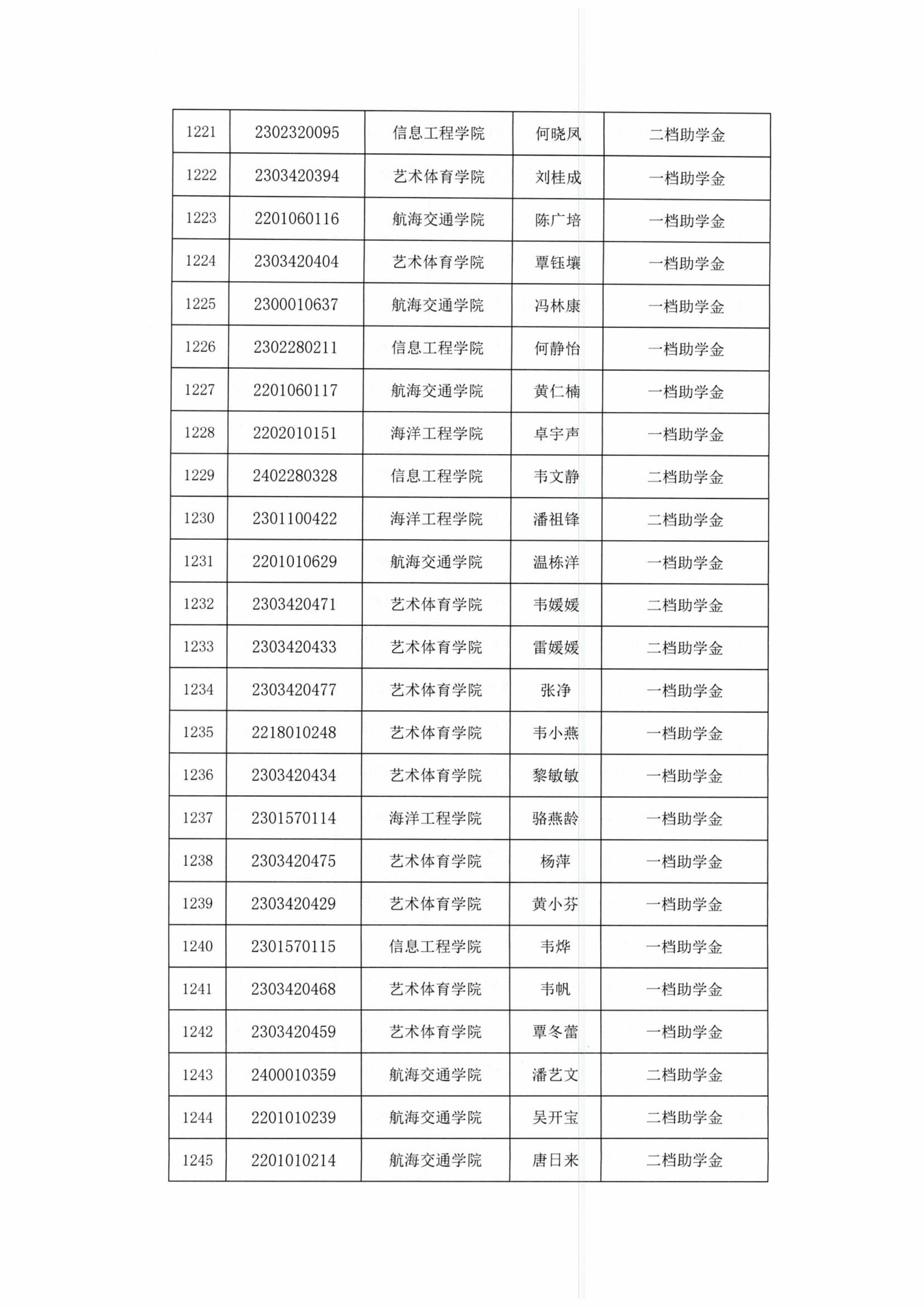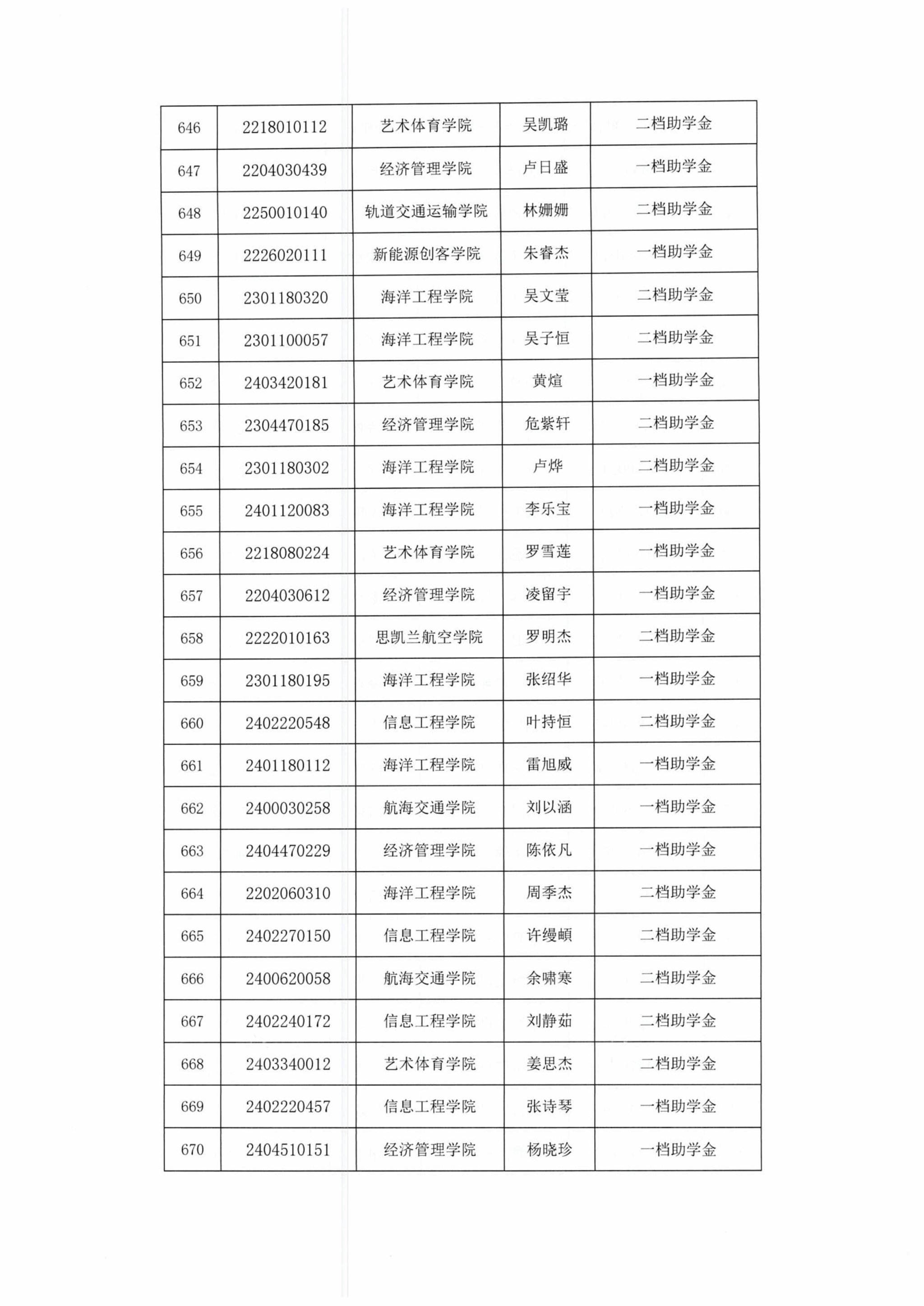 米兰官网主页 2024-2025学年第一学期大专国家助学金学生名单公示