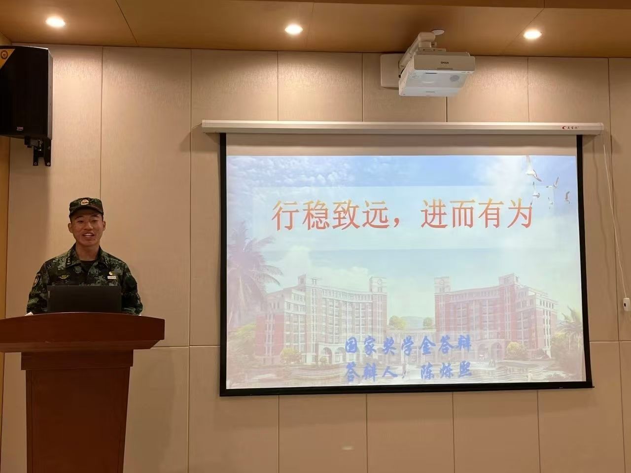 在实践上,他作为⼀名热爱国防、向往军营的大学生,积极投身各项实践中。在训练上,他能按时训练当中,服从指挥、听从安排如:“每周一军事训练场的战术基础”“每周三的五公里训练”围绕“训练目标、训练计划、训练方法、训练进展、训练成果”五位一体进行展开,为自己的军旅生涯打下坚实的基础。在实践活动中,他积极投身志愿活动,累计志愿时长275个小时,第二课堂59.62分,创新创业、生涯规划课时 78.5小时。到粤港澳大湾区学创空间参观学习、到中山大学、深圳大学7所高校学习经验;深入祥芝古浮村蔡大爷家助农、扶农,帮助其紫菜养殖的采样、排杆。