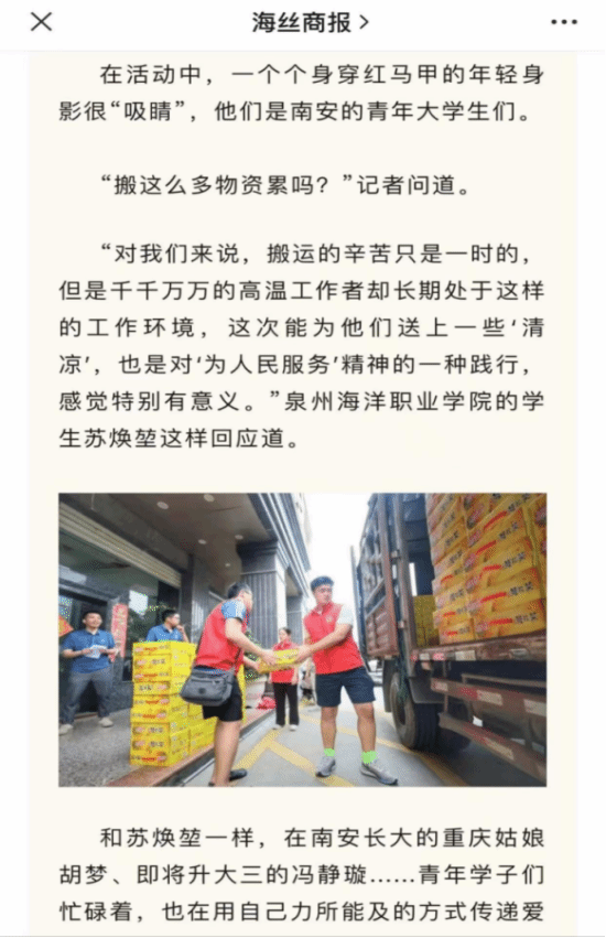 苏焕堃深知,理论与实践的结合是成才的关键。因此,他利用课余时间积极参与社会实践和志愿服务活动。2023年暑假,他参加了学校组织的“三下乡”社会实践活动,与马克思主义学院的老师一同探寻泉州的海丝文化。在活动中,他不仅增长了见识,还深刻体会到了文化传承的重要性。