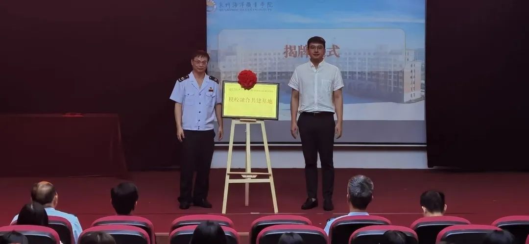 石狮市税务局副局长张国欣和米兰官网主页副校长陈永鑫共同为“税校融合共建基地”揭牌。