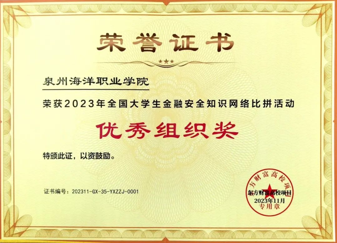 近日,我院在2023年“东方财富杯”全国大学生金融安全知识网络比拼活动中荣获“优秀组织奖”。本次活动由共青团中央青年发展部主办,全国学校共青团研究中心、东方财富信息股份有限公司承办,旨在普及金融知识,提升大学生的金融安全意识与素养。本次活动由经济管理学院团委精心组织和策划,全校师生踊跃参与,共同展现了我院在金融安全教育领域的成绩。