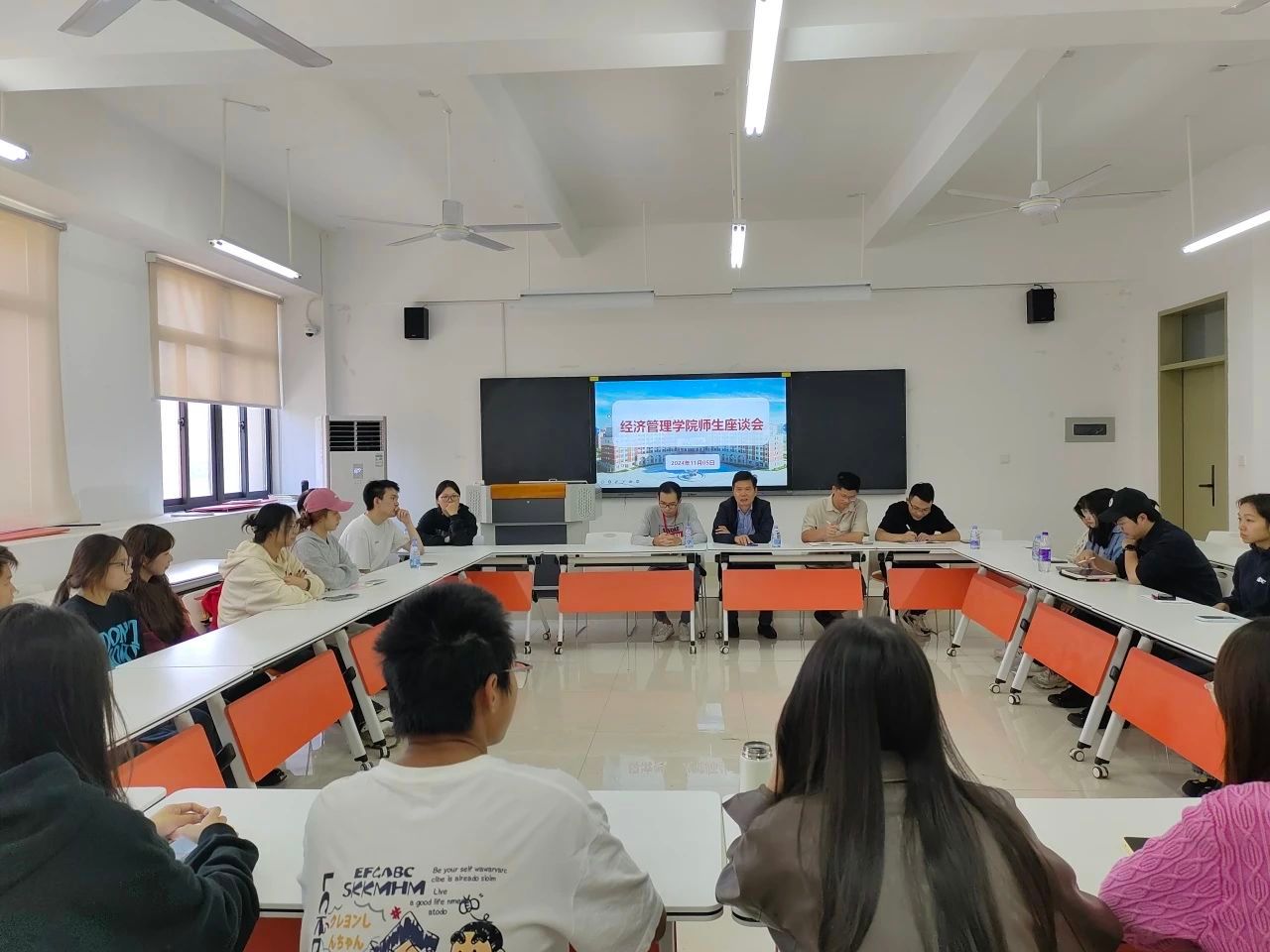 为深入了解师生的思想动态,聆听师生的心声,推动我院优良学风建设,经济管理学院于11月5日在3404教室举行了师生座谈会。院长张恒中、副院长张纪华、党支部副书记吴钊淳以及各专业教师代表、辅导员代表和学生代表参加了本次座谈会。