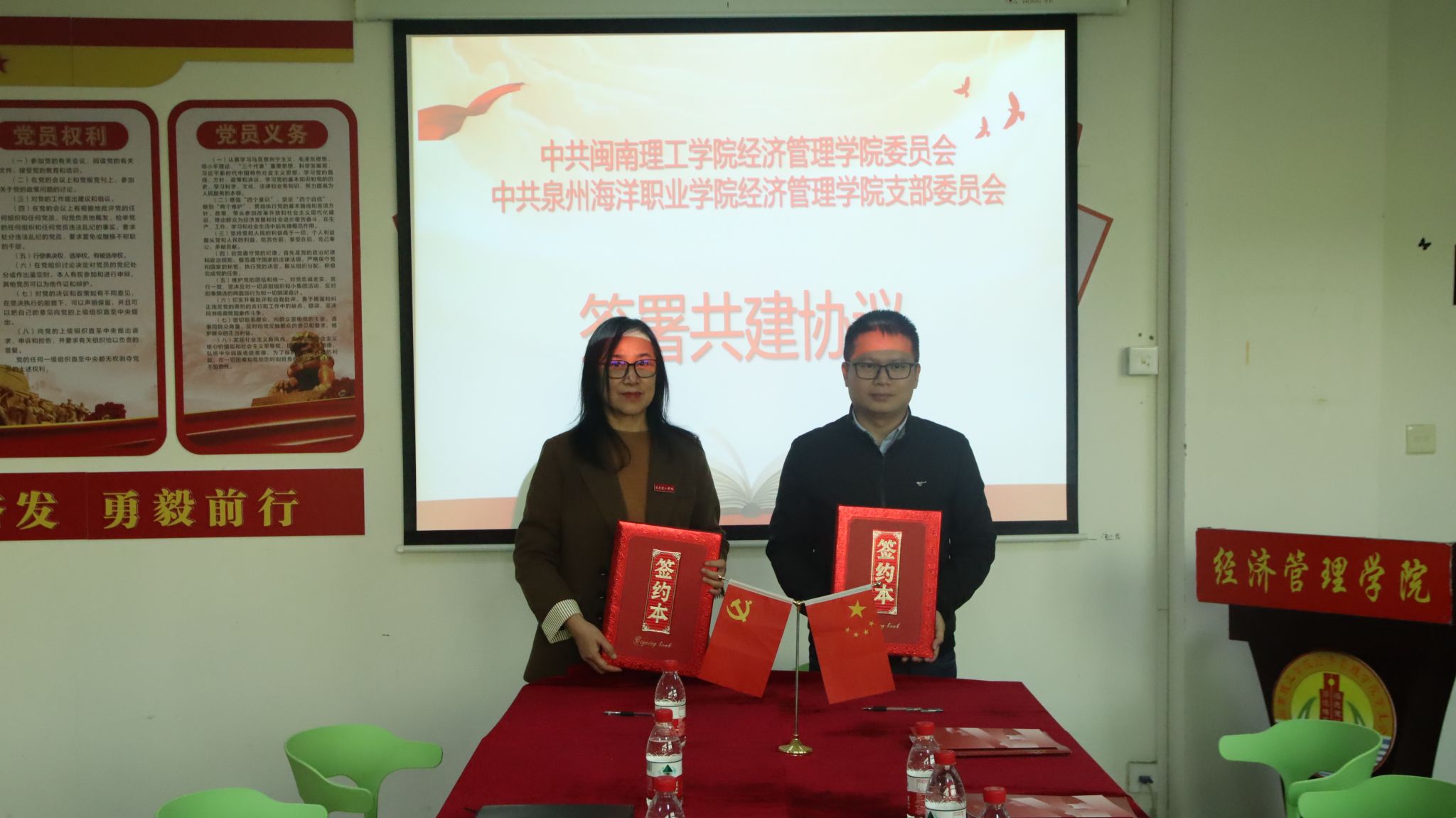 闽南理工学院经济管理学院党委书记韩华英与米兰官网主页经济管理学院党支部书记林钊代表双方签订《党建共建协议》,共商党组织发展策略。根据协议书,双方将在加强政治理论学习、创新服务模式和增强党组织服务功能等方面开展合作,激发党建新动能。
