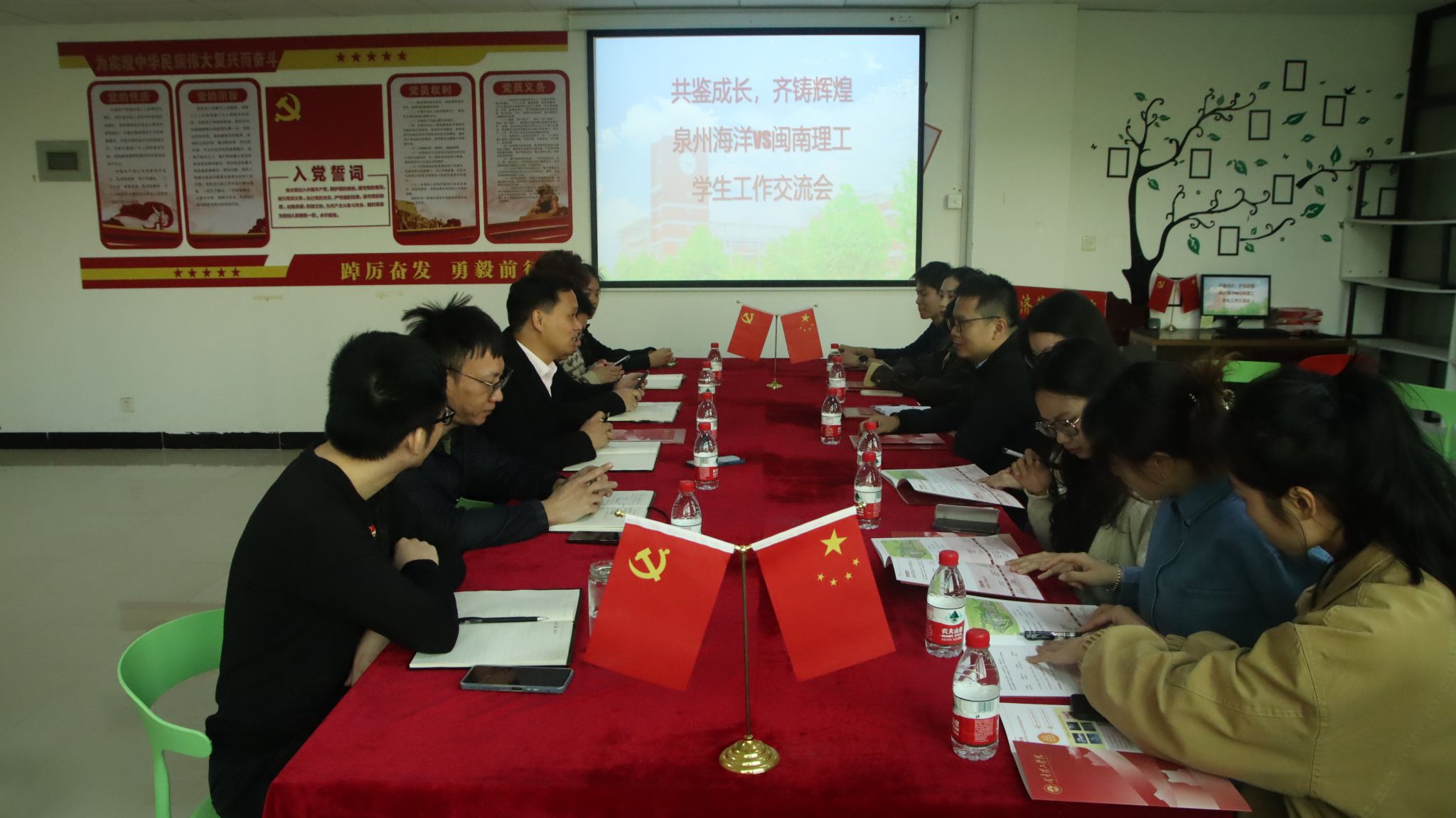 在座谈会上,闽南理工学院经济管理学院党委副书记林益彬介绍了学院基本情况、党建工作、专业布局、学生工作等工作。双方围绕学院文化建设、双创工作、德育队伍建设等问题进行了深入交流,共同探索党建工作和团学工作的新思路、新方法,创新学工队伍工作模式,双方分享总结经验,探讨合作规划。