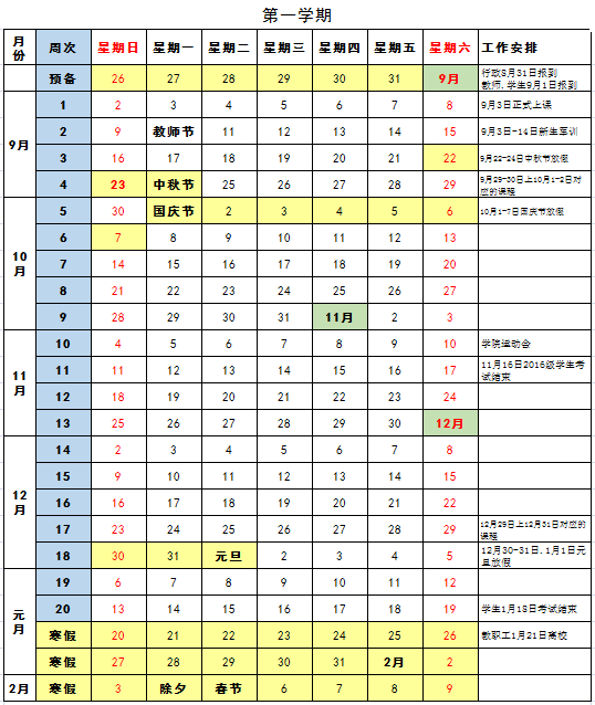米兰官网主页2018-2019学年校历