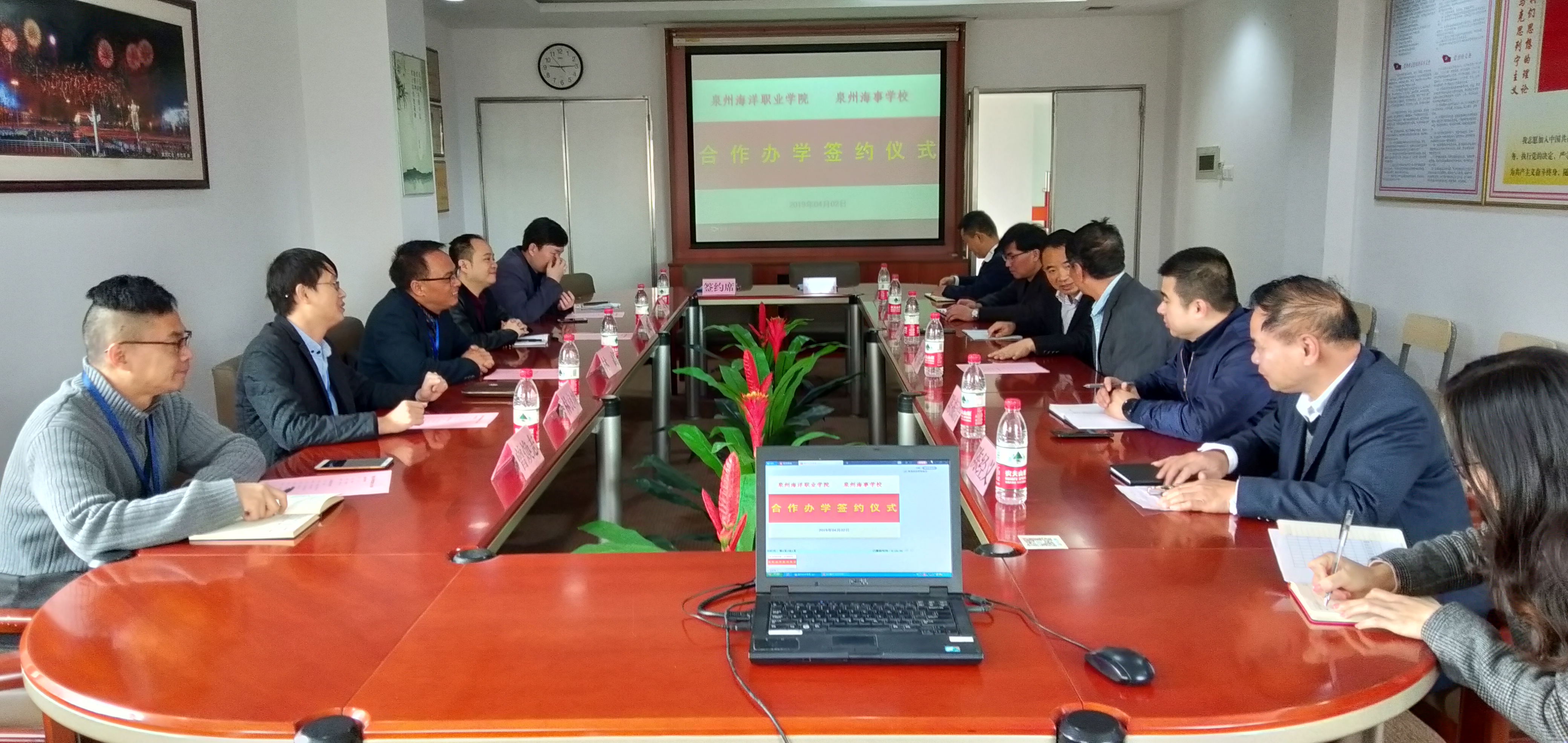 2019年4月2日上午,米兰官网主页与泉州海事学校五年制高等教育联合办学签约仪式顺利举行。米兰官网主页吴广华副院长、泉州海事学校林高校长以及两院校各相关部门负责人参加签约仪式,就联办专业、办学形式、招生计划、学制、招生对象、学籍管理、收费以及双方职责等方面达成一致共识。