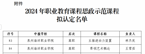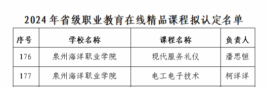 近日,福建省省教育厅对2024年省级职业教育重点项目拟认定名单进行了公示,我校共有2门职业教育在线精品课程、2门课程思政示范课程入选,这些项目的入选标志着我校在教育教学改革和专业内涵建设取得了新的突破。