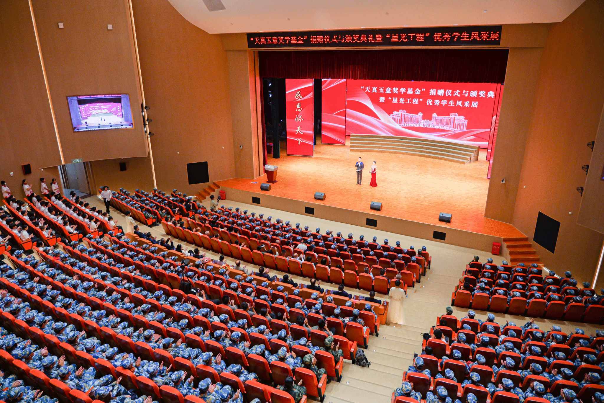 颁奖典礼在青春洋溢的校歌合唱中温馨启幕,温暖的歌声回荡全场,为典礼增添了一份动人的暖意。