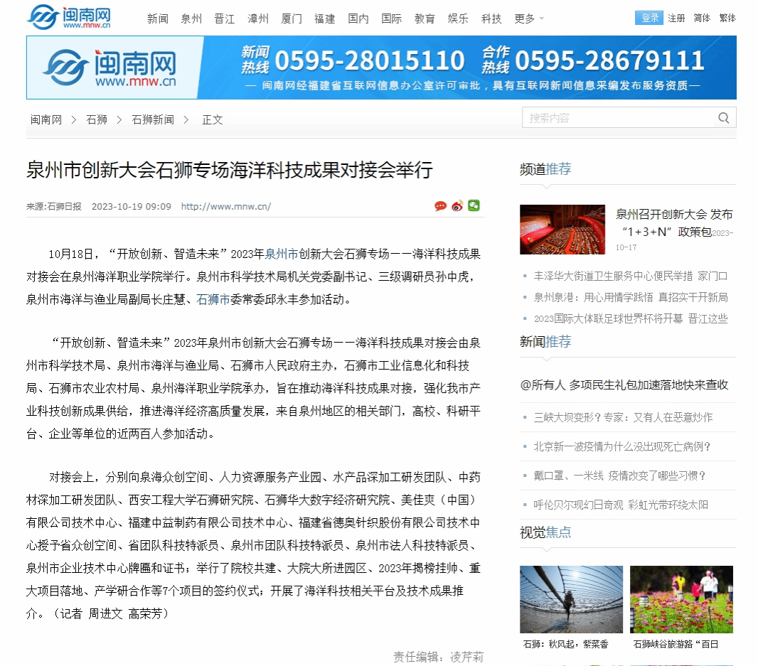 【闽南网】泉州市创新大会石狮专场海洋科技成果对接会举行