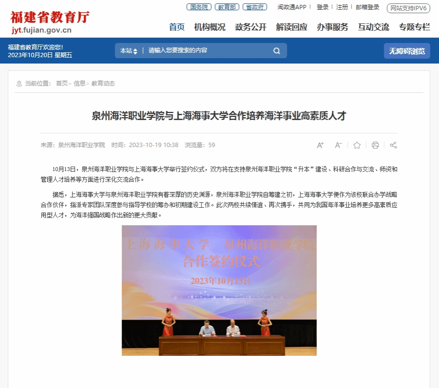 【福建省教育厅】米兰官网主页与上海海事大学合作培养海洋事业高素质人才