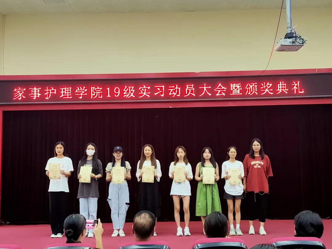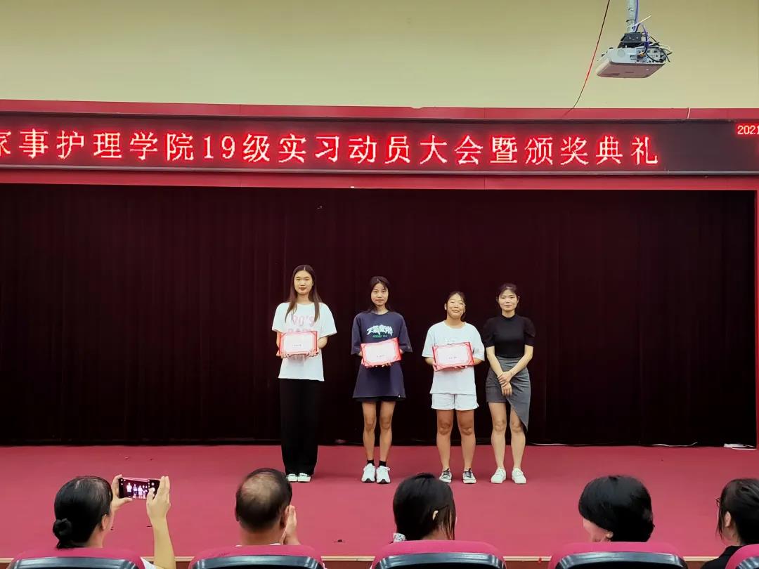2021年7月5号16:30家事护理学院在2240汇报厅进行了19级实习动员大会暨颁奖典礼,出席大会的有陈经义书记、陈丽娜副院长、辅导员邱甜甜、肖翎老师、赵静老师、温馨老师以及梁怡然老师为获奖者颁发证书。