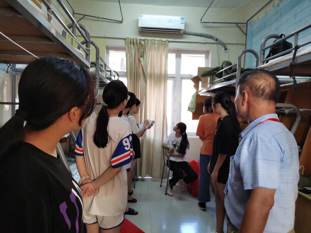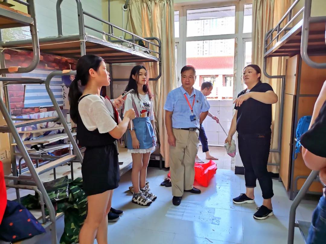 走进宿舍,院长陈经义首先仔细询问了新生在新环境下对宿舍适应情况,了解了各寝室人员到达情况,对新生生活物品领取是否齐全进行了亲切的询问。