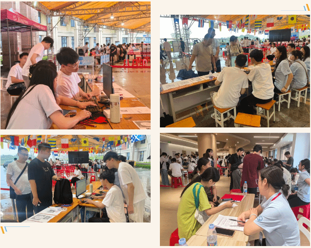 现场贴心的“一站式”服务让报到更加便捷,图书馆大厅还设置了专业咨询点,现场为学生们答疑解惑。迎新志愿者们热情洋溢,细心引导新生们走完报到流程。